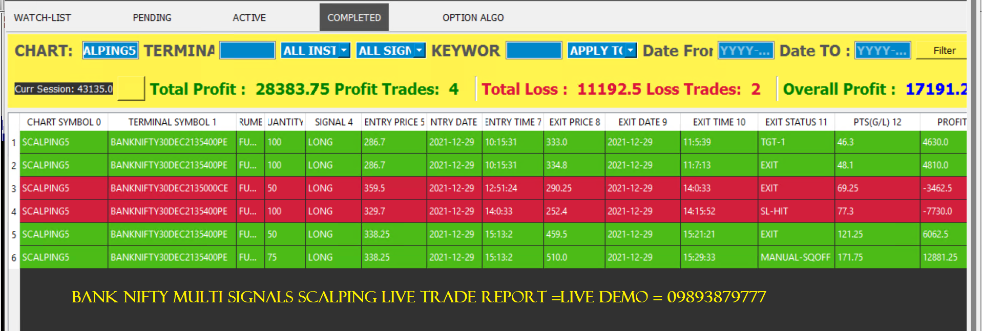 OCT SERIES TOTAL PROFIT 7,16,000/-RS WITH CAPITAL 30K