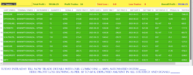 BANK NIFTY Aug SERIES TOTAL PT 4000 PROFIT 1,00,000/- PR LOT   NIFTY Aug SERIES TOTAL POINT 900 PROFIT 45,000/- PER LOT BANK NIFTY Jul SERIES TOTAL PT 5700 PROFIT 1,18,000/- PR LOT   NIFTY Jul SERIES TOTAL POINT 1330 PROFIT 65,600/- PER LOT